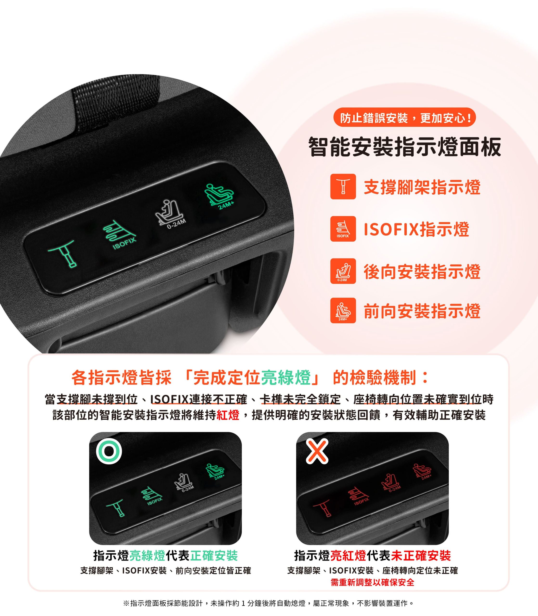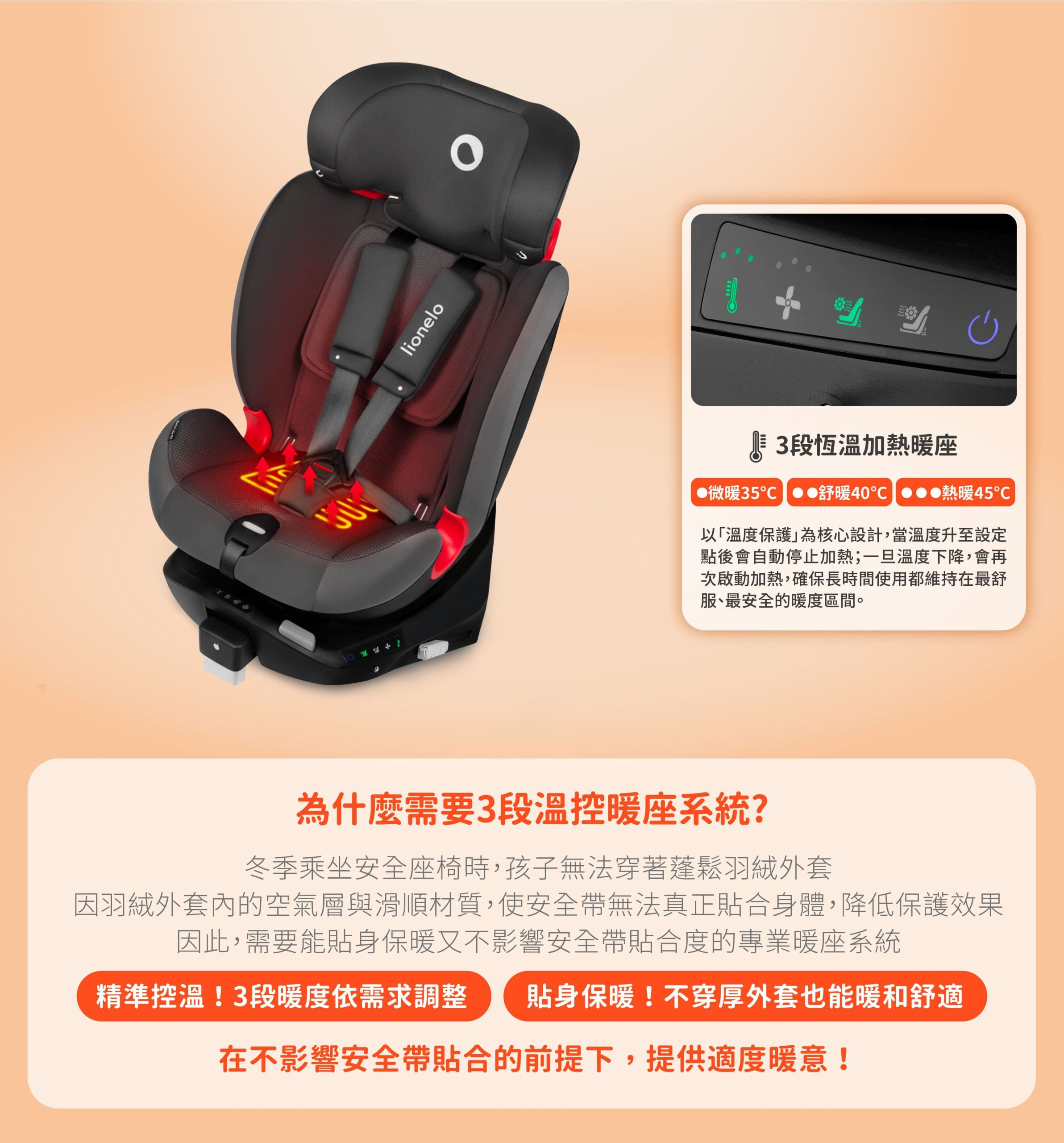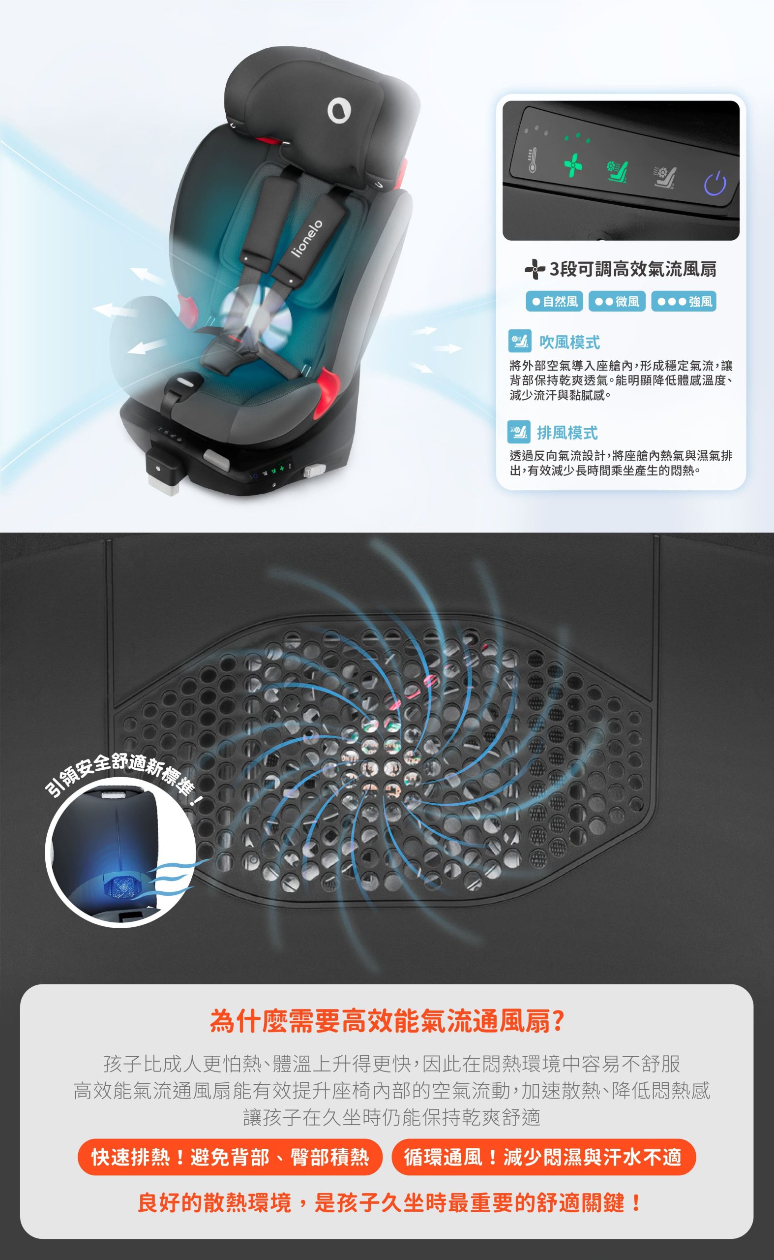 結合「風扇暖座雙控 」與「智能安裝指示燈」,不論夏季酷熱或冬日寒冷,也能保持座椅內舒適恆溫,呵護每一程旅途!從新生兒到12歲都能舒適乘坐!